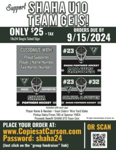Please help support and promote SHAHA hockey by purchasing and proudly displaying a SHAHA yard sign. Signs come in 3 different options; 1 player name & number, 2 player names & numbers, or no player information and a simple display of support for SHAHA. Signs are $25 each (plus tax) and can be picked up…